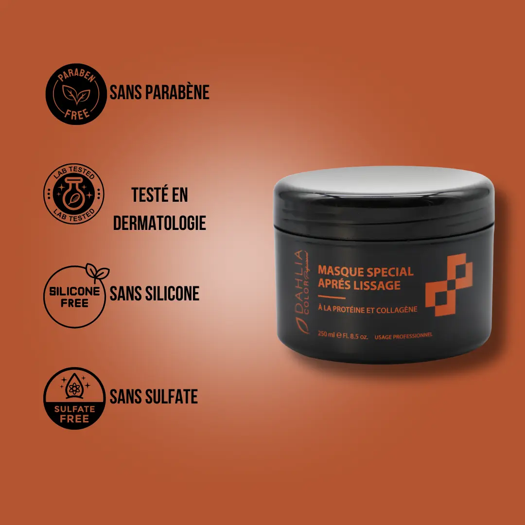 Vous voulez prolonger l’effet lissant de vos cheveux tout en les réparant en profondeur ? Le Masque Protéine & Collagène de Dahlia Color est le soin intensif qu’il vous faut pour sublimer et préserver vos cheveux après un lissage.